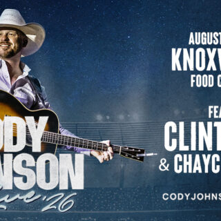 Cody Johnson is bringing his Live ’26 Tour to Knoxville, TN, performing at the Food City Center on Saturday, August 22, 2026, at 7:30 PM. Special guests include Clint Black and Chayce Beckham. Tickets go...