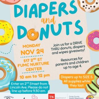 A drive-thru donuts, diapers, and wipes giveaway is happening on Monday, November 24, from 10 a.m. to 12 p.m. at the FUMC Nurture Center, located at 517 2nd Street. This event provides resources for...